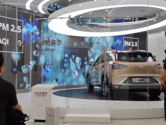 现场工作人员说,“NEXO对PM2.5、可吸入颗粒物的净化率可达到99%以上,10万辆 NEXO 行驶60分钟可以净化供400万人一小时呼吸的空气。”