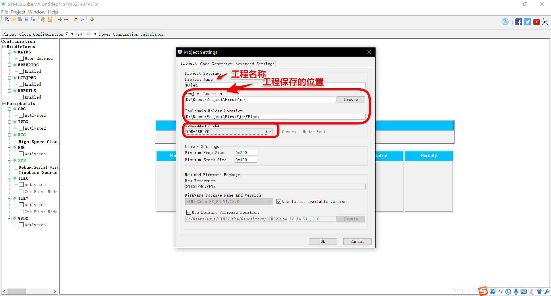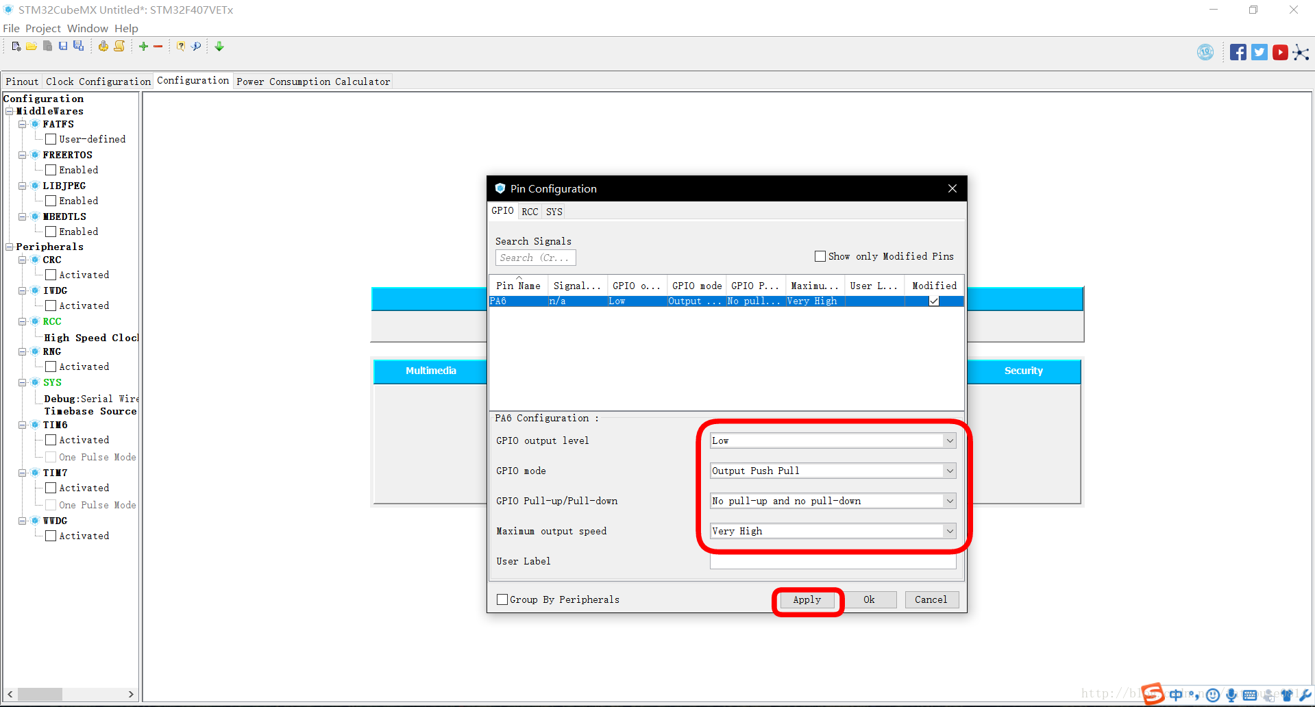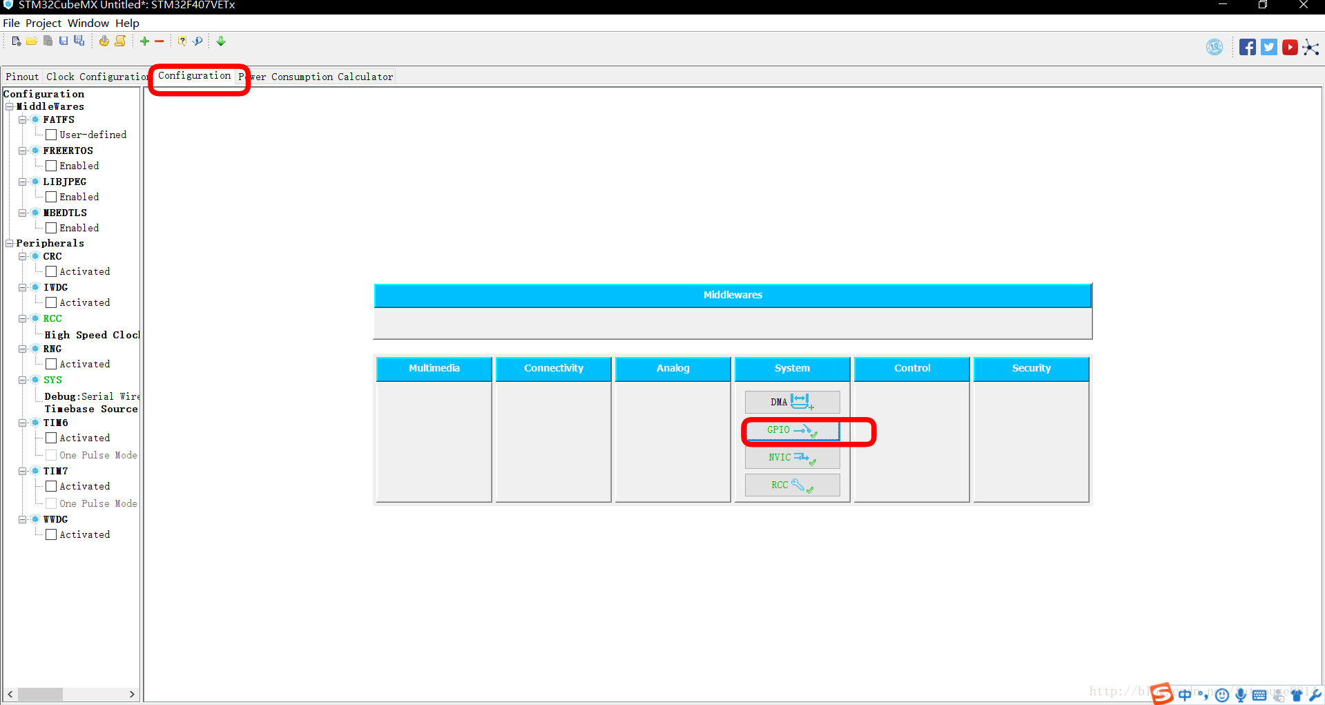 二、对所使用的SYS和GPIO进行配置