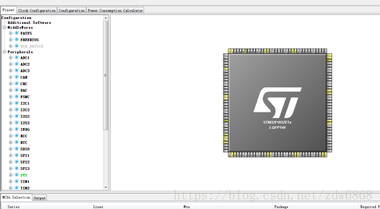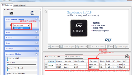 打开STM32cubeMX软件,点击New Project。选择对应开板MCU(STM32F103ZET6)。