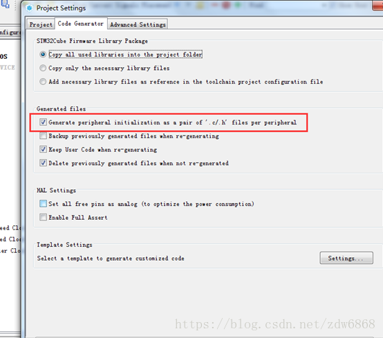在Code Generator中找到Generated files框,勾选Generated periphera initialization as a pair of '.c/.h' files per IP。外设初始化为独立的C文件和头文件。