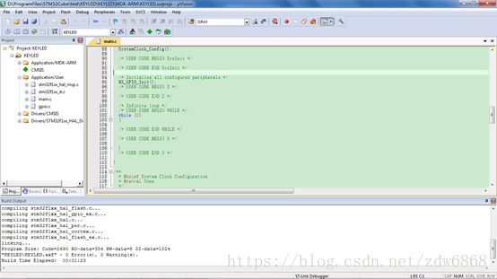 点击Project –>Generate Code或者点击快捷图标生成工程代码。