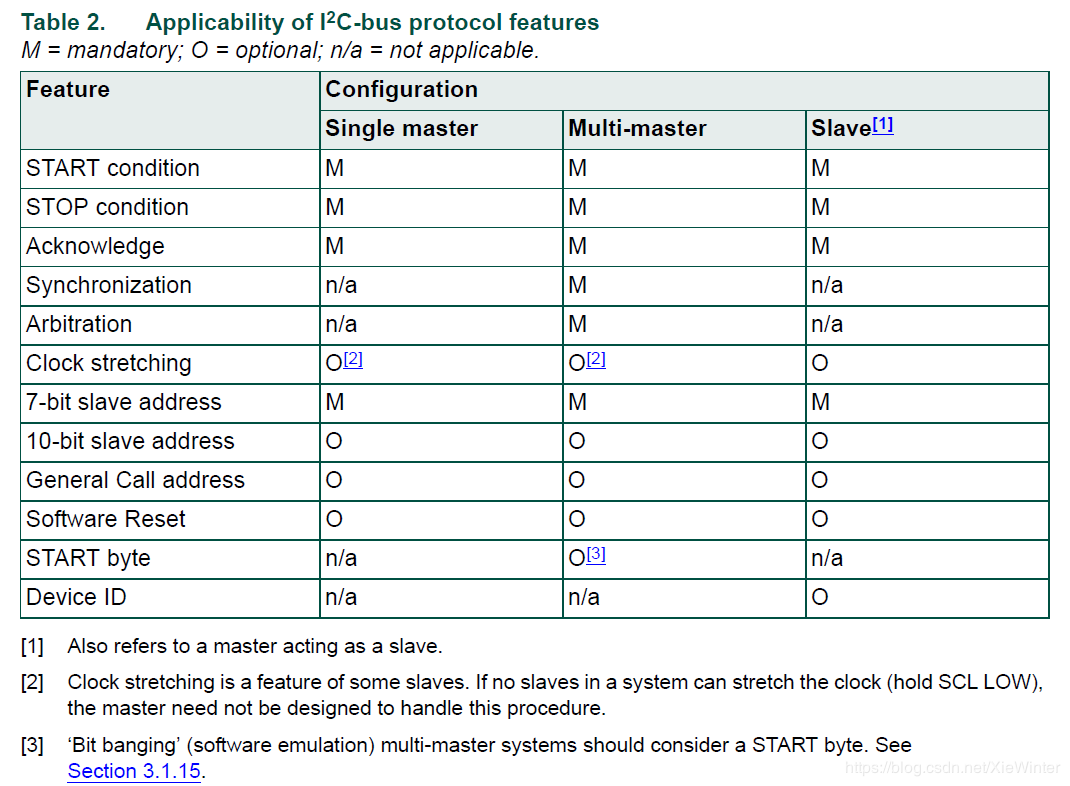 如果连接到总线的设备包含必要的接口硬件,则可以轻松检测START和STOP条件。 但是,没有这种接口的微控制器必须在每个时钟周期至少两次采样SDA线来检测是否发生电平转换。