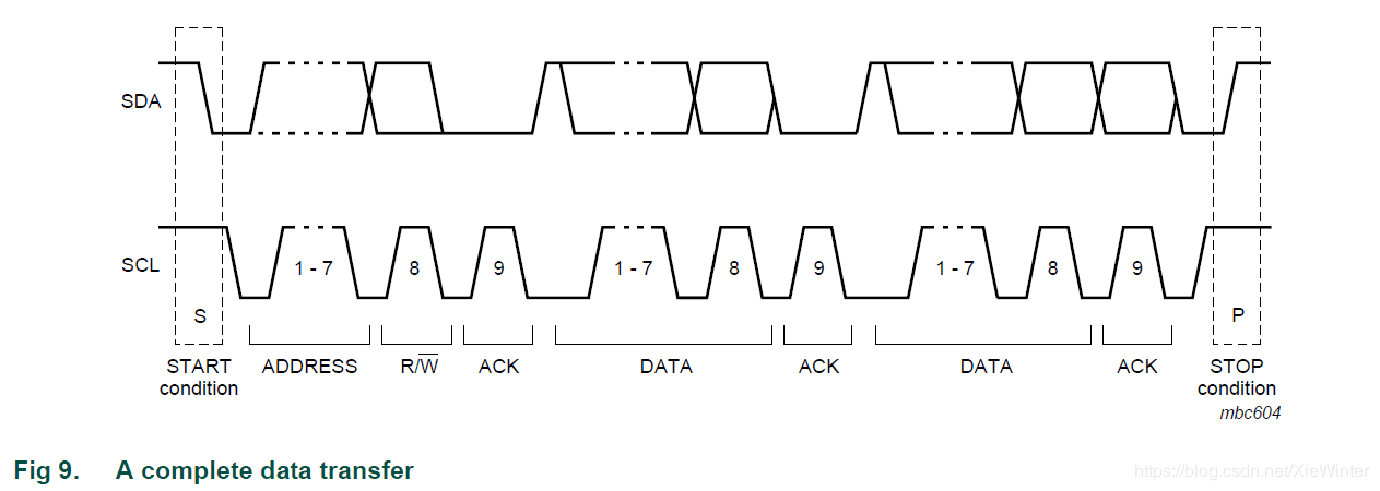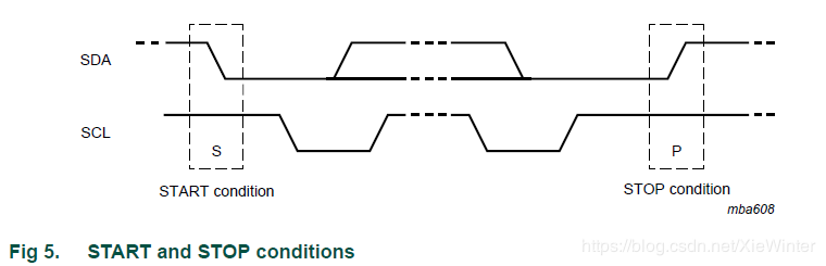 所有的传输都是所有事务都以START(S)开始,并由STOP(P)终止(见图5)。
