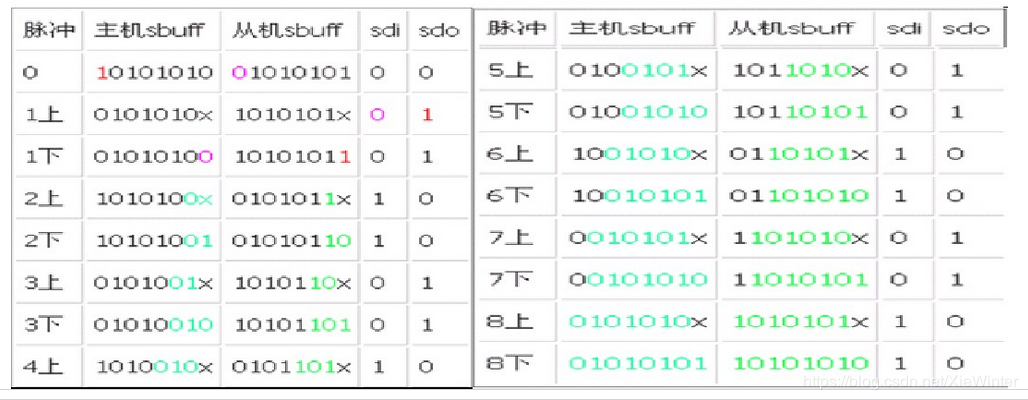 先前在主SPI数据寄存器中的数据现在应该在从数据寄存器中,从数据寄存器中的数据应该在主数据寄存器中。