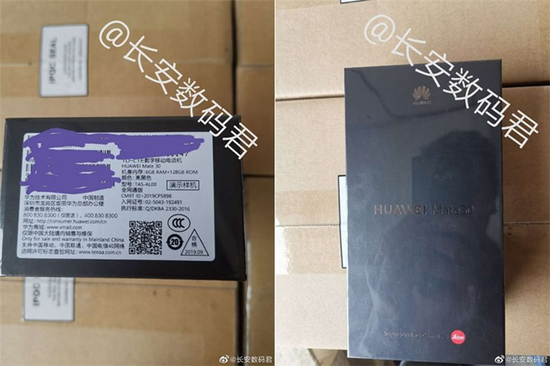 昨天,又有数码博主曝光了华为Mate 30的包装盒及真机部分照,从图中得知,华为Mate 30配备6+128GB机身存储,配色为亮黑色。
