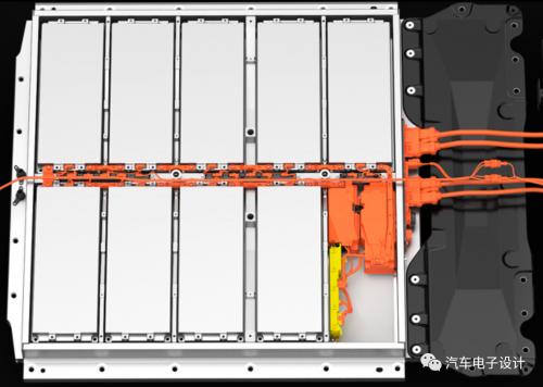 电池电气接口如第二章更清晰,MEB里面没有外部的分线盒,空调、PTC、DCDC和OBC的分线,通过在电池系统上盖的高压线槽里面来走