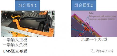这个模组形状的配合系统,通过一个正极配电盒+一个负极配电盒+一个BMS三块组填充了一个模组的区域。当配置转换,只能多利用Y方向的空间的时候,则做成了一个紧凑的布置,如下图右边的样子。
