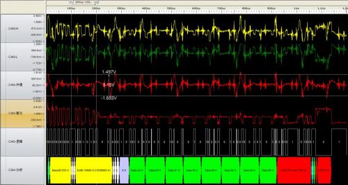 此时的CAN波形图如图4所示,可见干扰导致波形严重畸变。