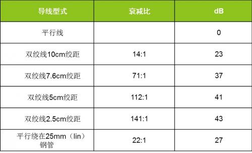 表1 双绞线对磁干扰的衰减比
