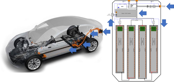 ▲图4 奔驰EQC的400V 两个大的模块的并联连接