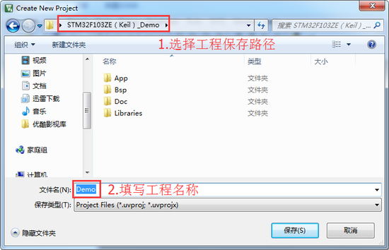 首先建立一个存放工程文件的文件夹:STM32F103ZE(Keil)_Demo