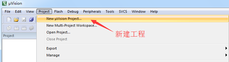 A.打开软件,新建立工程(Project -> New uVision Project)