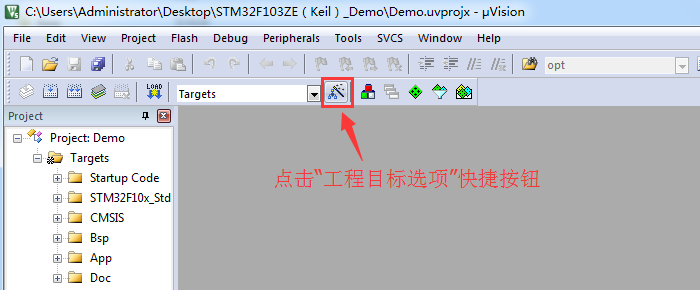 A.点击“工程目标选项”进入配置(或Project -> Options for Target)