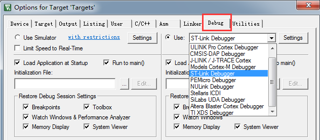 这个选项根据自己的下载调试器来选择(比如:ST-Link)