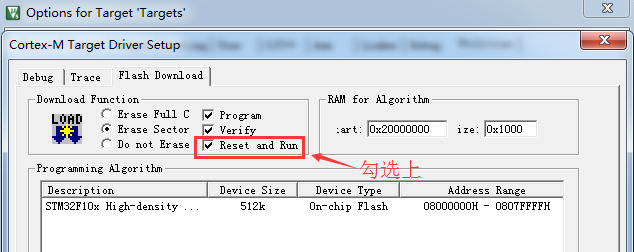有些初学的朋友说“为什么我下载程序之后,需要按一下复位键才能运行?”,只需要在工程中勾选上“Reset and Run”就可实现,下载完程序马上运行了。