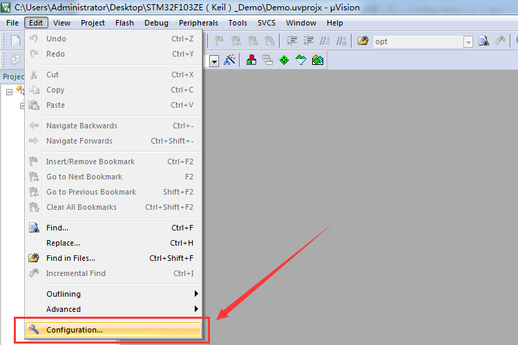 2.从菜单中打开,Edit-> Configuration,如下图: