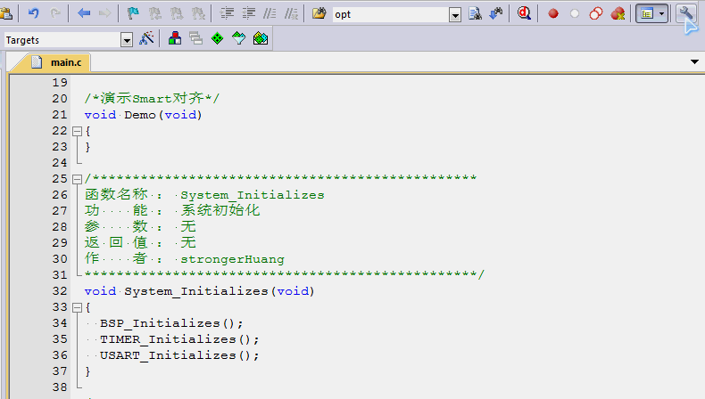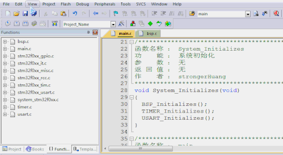 比如:我打开了main.c和bsp.c两个文件来编辑,那么就显示这两个文件的内容(函数)。