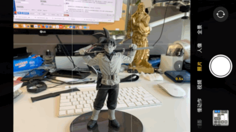 2)因为超广角镜头的加入,拍照界面有了“0.5”这选项,打开即为超广角,之后以此切换到广角机长焦,滑动则是渐进变焦;