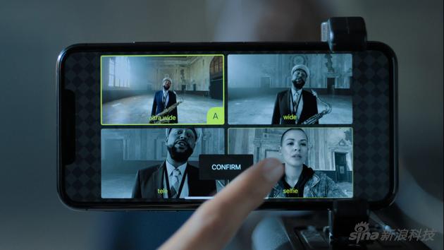 发布会上,为了说明iPhone 11 Pro视频能力的强大,演示了一个用第三方应用Filmic能调用后三前一共计四颗1200万像素镜头同时拍摄,并且可以任选四颗预览画面,两颗同时拍摄。这其实炫耀的也是A13的数据处理能力。