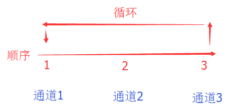 我们定义通道1的转换顺序为第1、通道2的转换顺序为第2、通道3的转换顺序为第3;