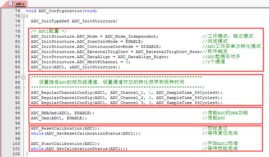 本文实例中关于ADC部分的配置及知识点,针对初学者相对比较多、理解起来也相对比较难一点。