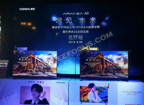 2019年8月29日,康佳在其名为洞见未来的秋季新品发布会北京站上再次解读了APHAEA品牌以及新品APHAEA -A3电视。此次发布的康佳APHAEA- A3搭载的康佳易柚OS7.0系统,植入了AI全程语音、AI画质、AI音质、AI音箱、AI智能家居、AI情感交互六大技术。基于生活的时间轴,通过AI技术融入家庭生活场景,从时间、场景、操控、体验等多维度配合,共同构建全景AI产品矩阵。