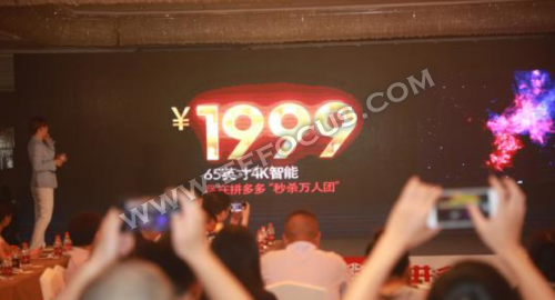 8月17日,在拼多多联合兆驰股份(JVC)的新品牌发布会上,拼多多联手兆驰股份正式发布定制化JVC 65英寸智能4K大屏电视,首发活动价1999元,将于8月18日在拼多多上线销售。