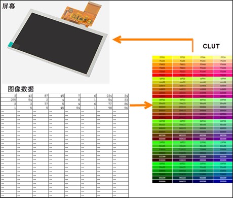 液晶屏中的每个像素点都是数据,在实际应用中需要把每个像素点的数据缓存起来,再传输给液晶屏,这种存储显示数据的存储器被称为显存。显存一般至少要能存储液晶屏的一帧显示数据,如分辨率为800x480的液晶屏,使用RGB888格式显示,它的一帧显示数据大小为:3x800x480=1152000字节;若使用RGB565格式显示,一帧显示数据大小为:2x800x480=768000字节。