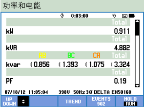 如果担心交流功率测试不准确从而导致效率值错误,可以退出“逆变器效率”功能,进入“功率和电能”项,进行有功功率比较(kW),如下: