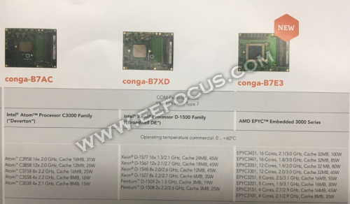 除了以上产品,今年展会上还展出了第7代凌动和第8代英特尔处理器相对应的COM E产品。