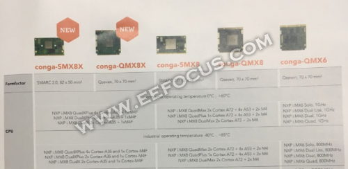 针对工业4.0,除了原本的COM E的方案之外,康佳特还推出了很多金手指的插槽模块,这些模块都采用了恩智浦最新的处理器i.MX8,这些产品的优势是成本价格低、功耗小和Linux系统的支持度高。