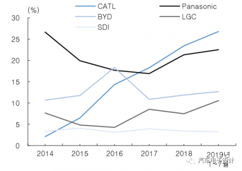 这是SNE做的从2014年到现在的主要几个企业的市占率的情况