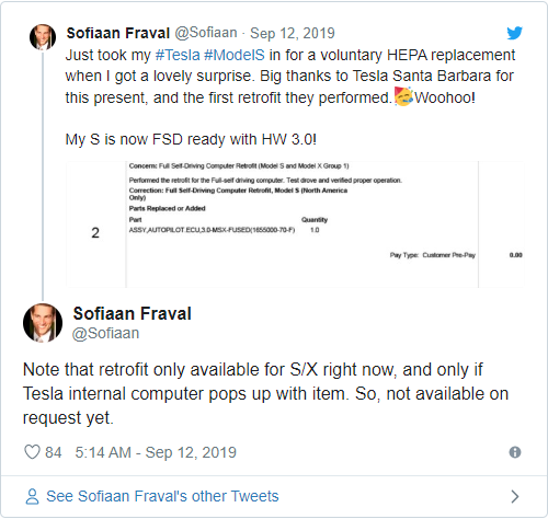 在这个时候,看起来特斯拉只是开始对已经计划投入使用的“第1组”中的Model S和Model X车辆进行改造。