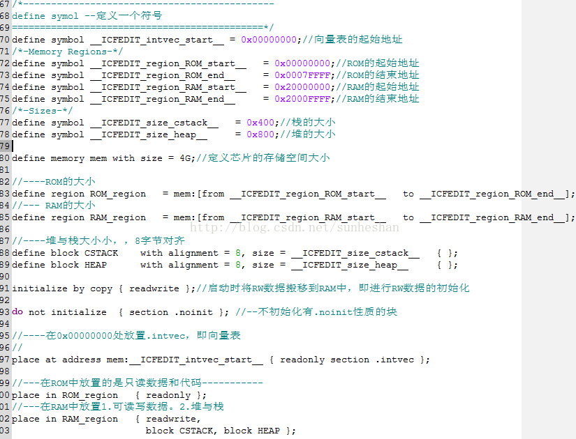 每个芯片开发商都会针对每款芯片来编写一个.icf文件就是传说中的链接文件。对于基本的应用,这个.icf文件足以满足你的工程需要。但有时也会需要改动,比如当你的项目要添加外部RAM时就要修改一下icf。