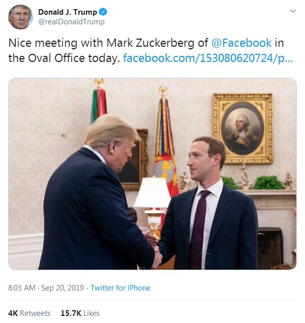 2019年09月21日 | 特朗普与扎克伯格的会面对Facebook有何影响?