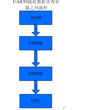 第一:UART0移位寄存器(U0RSR)通过引脚RxD0接收有效字符。