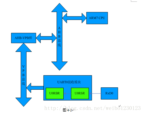第三:VPB总线将缓冲寄存器(U0RBR)中的数据通过AHB-VPB桥传到AHB总线上