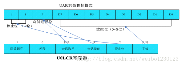 第一:U0LCR(控制寄存器):设置UART0的通信格式。