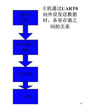 第三:UART0接收模块接受来自VPB总线的数据。并将数据缓存到U0THR寄存器中。