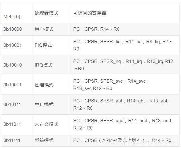 下表示控制位M[4:0]的含义: