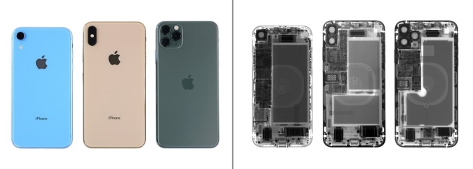 在拆解之前,IFixit先将iPhone XR、XS Max与11 Pro Max按照从左到右的顺序放好,试图找出这三款手机到底有什么不同的地方。