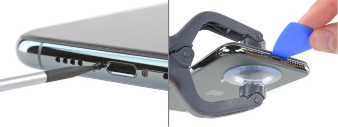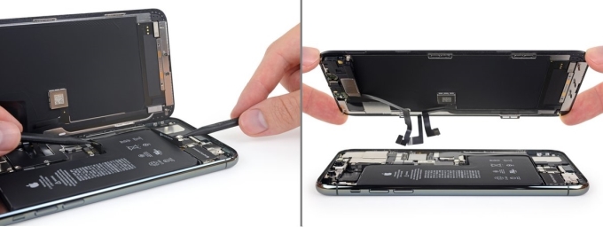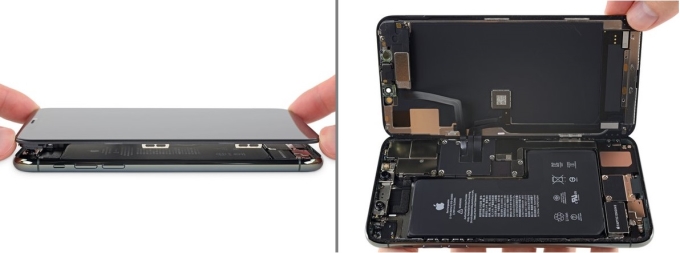 打开iPhone Pro Max的过程并不难,先将手机底部螺丝拧开,再用撬片就可以轻易将屏幕取下。