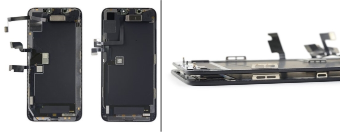 屏幕方面,有一个较小但有用的更新是,三根柔性电缆全部汇聚在同一位置,很遗憾的是,今年的iPhone取消了3D Touch功能,因为该功能的取消,显示器的厚度比其前代产品薄约四分之一毫米。加上iPhone整体厚度的轻微增加,显然是增加电池容量的很大一部分。