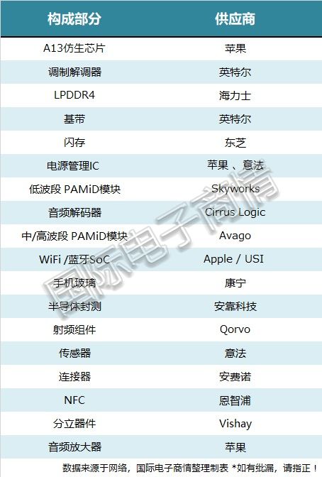 最后, iPhone 11 Pro Max的供应商名单,具体见表: