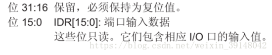 GPIO寄存器IDR(输入数据寄存器):