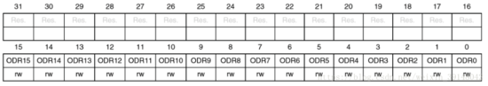 GPIO寄存器ODR(输出数据寄存器):