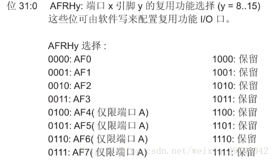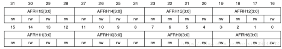 GPIO寄存器AFRH(复用功能高位寄存器):