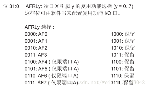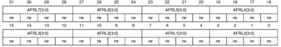 GPIO寄存器AFRL(复用功能低位寄存器):