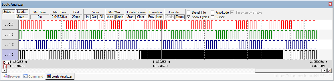 通道4先按10的比较值运行,具体频率未测,如果按1000的比较值运行,具体频率未测,实测效果
