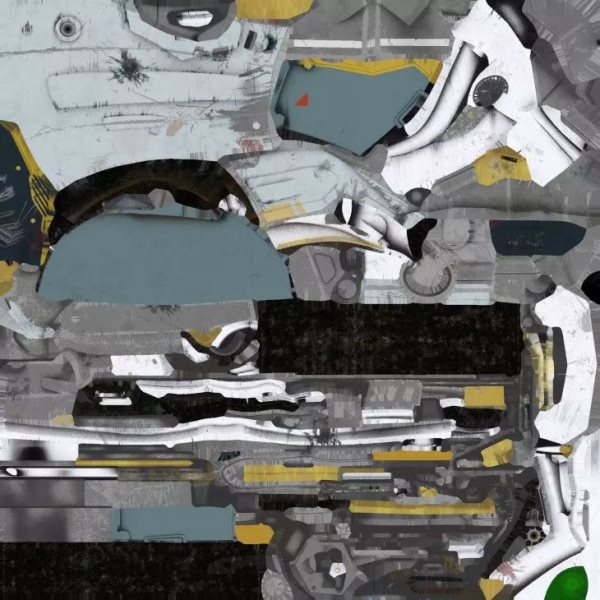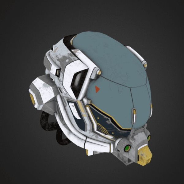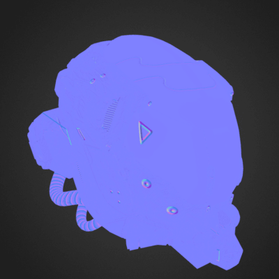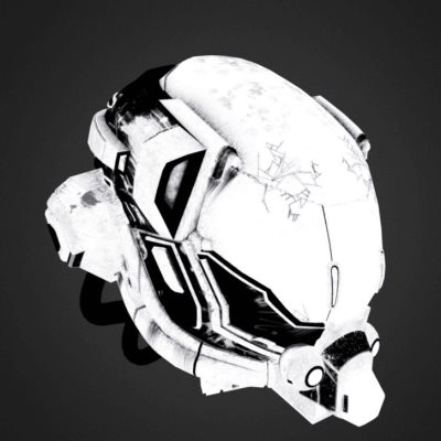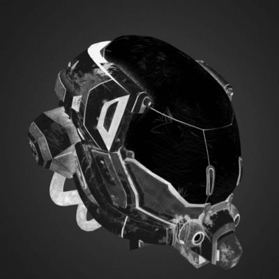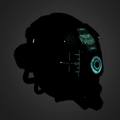 纹理表面包含所有自发射光源信息,这些特性与LED或LCD显示器类似,在着色器完成所有PBR的计算之后,放射性映射效果会被添加到最终的像素颜色中,从下图你可以看到只有一小部分区域会有亮光,这是头盔面板上设计了一个HUD装置。